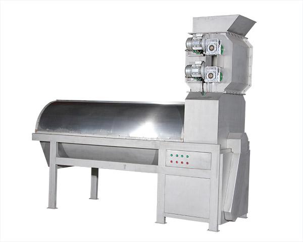 工作原理是破碎后的果肉、汁、皮通过进料斗进入双螺旋榨汁机,由……