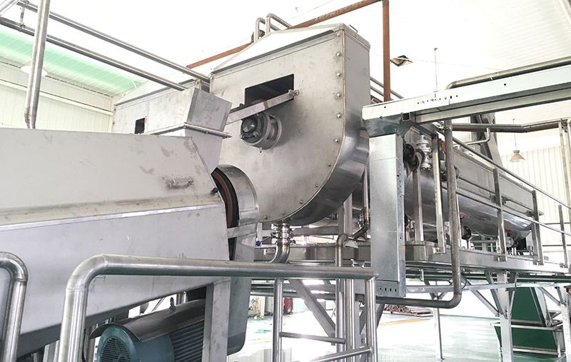 4.预煮:进料螺杆泵将经过清洗挑拣的红枣推送入预煮器,通过蒸汽直接加热,将红枣的温度从常温加热到80-85℃,使红枣充分提取浸泡。以便下一道工序的进行。